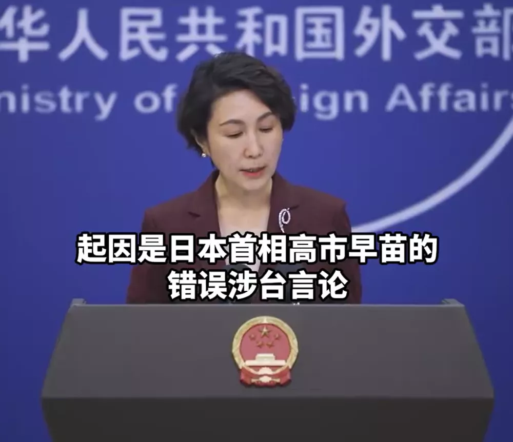 中国外交部发言人毛宁表示,近期中日之间的交流合作受到影响,起因是日本首相高市早苗的错误涉台言论,严重伤害了中国人民的感情,恶化了中日交流的氛围。日方应当立即纠正错误言行,停止在涉华问题上制造事端。
