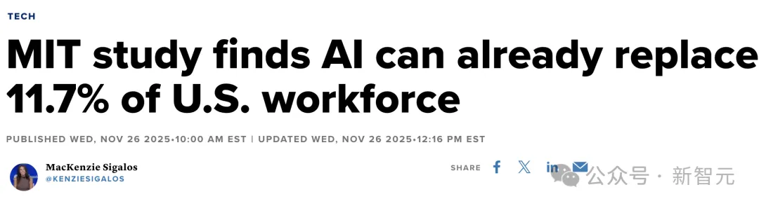 而来自MIT的研究发现,AI已经能取代11.7%的美国劳动力。
