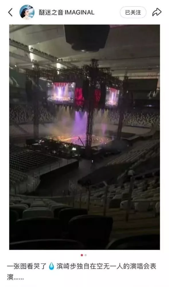 滨崎步在Instagram发布的图片显示,演唱会被迫取消、观众全无,滨崎步仍站上舞台唱完全场,“请找到能保护自己的事物,好好守护自己”。