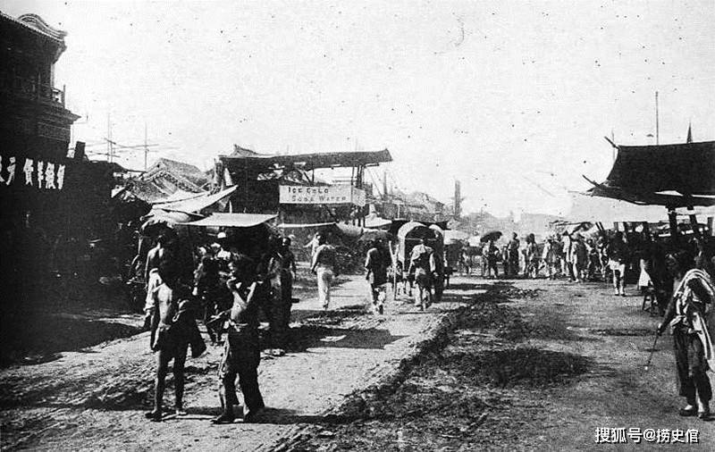 这是1901年的北京街景。远处一家商铺的门脸上赫然挂着写有“Ice Cold Soda Water”的幌子,直译为“冰镇苏打水”,就是最早的汽水。当然,这是“洋货”。老北京最早的汽水是北冰洋汽水,其前身可追溯至1936年成立的北平制冰厂。那是国货,至今还有。