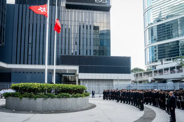 香港政府建筑物即日起一连三天下半旗志哀;多个中央驻港机构当天亦举行下半旗及默哀仪式。