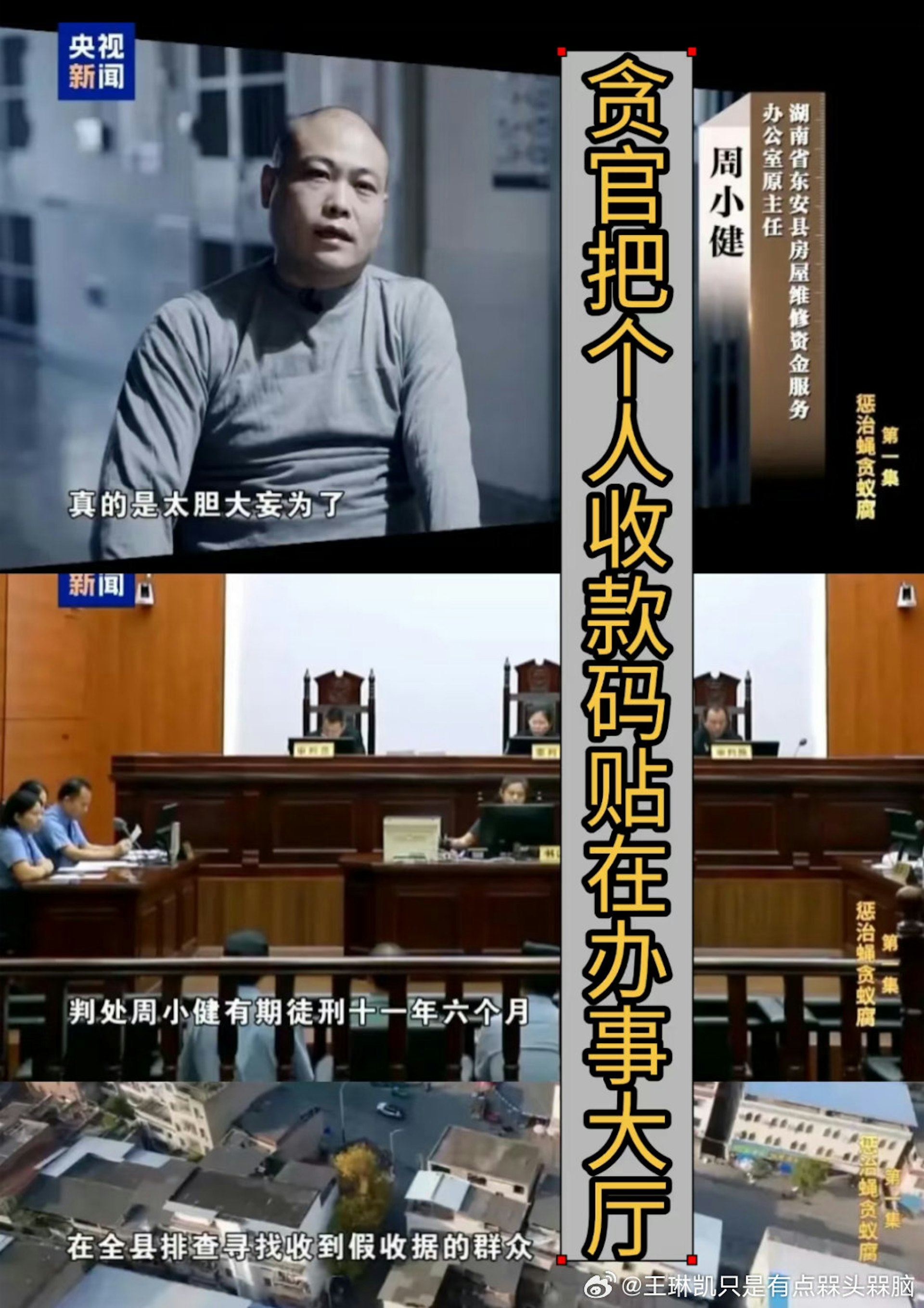 央视专题片《反腐为了人民》今年1月5日开播,第一集揭露有地方小官巨贪近千万人民币(专题),甚至把个人收款码直接放在缴费窗口。(微博)