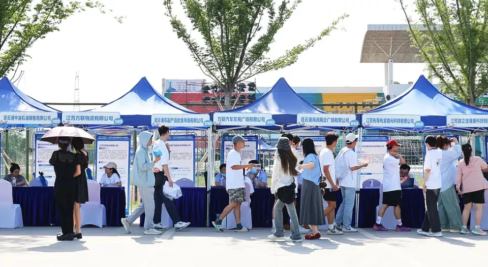 大学生在招聘会上咨询了解岗位情况