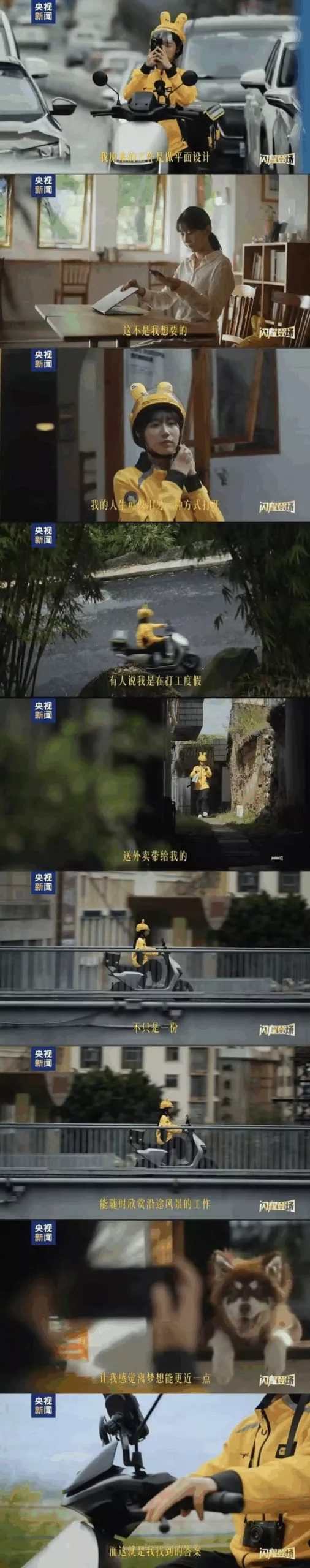 她说,外卖带给我的不只是一份工作,还有能随时欣赏沿途风景的自由,以及一个能随时切换的身份,让我感觉离梦想更近一点。