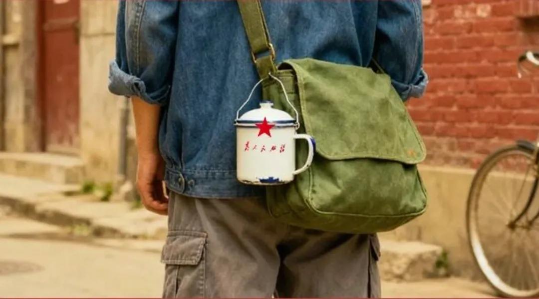 隔壁的爷爷表示,他们的“包挂”是搪瓷杯。二十世纪五六十年代,流行将搪瓷杯挂在邮差包上,美观又实用。(图/《北京商报》)