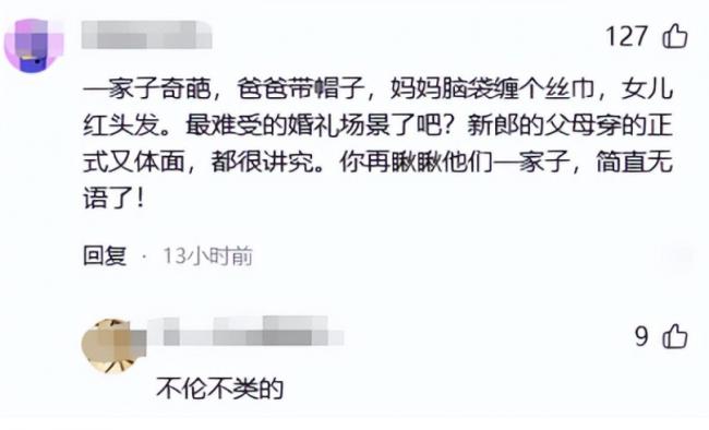 很会抓细节的网友更指责刘一丝竟然穿拖鞋敬酒,真是不庄重,甚至就连他的父亲刘欢也被连累,被网友评判成失败的教育。