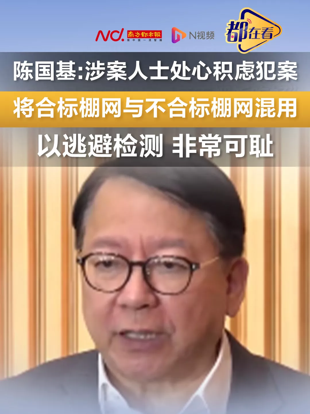 陈国基:涉案人士的手法非常狡猾,他们将标准和不合标准的围网一起用,将不合标准的(围网)放在只有消防员才能去到的地方,他们用这个方法来逃避政府的检测,我可以说这是处心积虑去犯案,这个事情是非常可耻的。我借此机会强烈谴责这些涉案人士,只是为了蝇头小利,害死了这么多条人命,一定会依法追究到底,还我们的死者伤者一个公道。