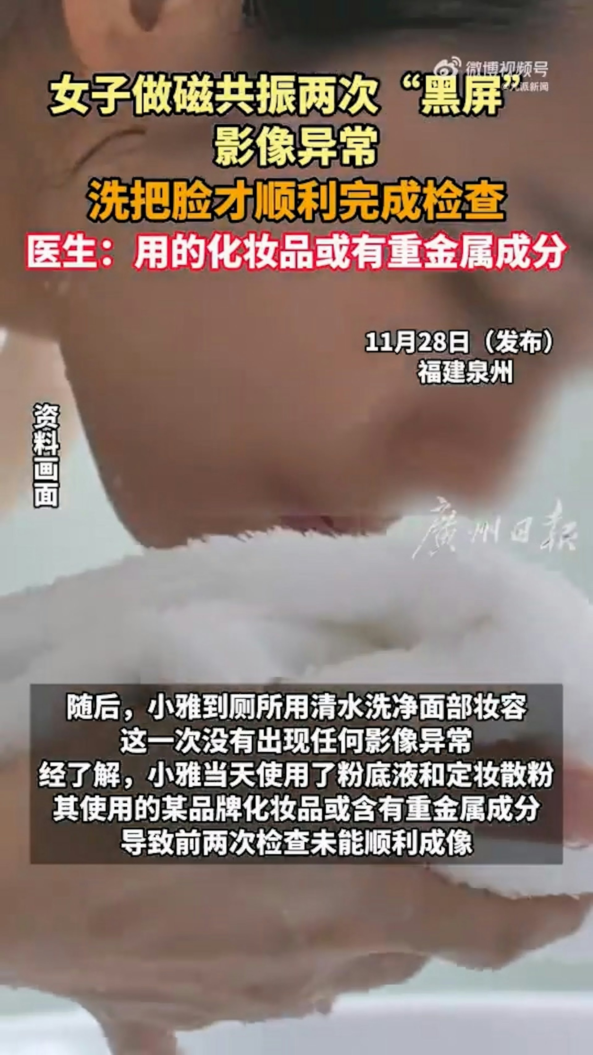 女生做磁力共振两次失败洗脸后才完成 元凶竟是…