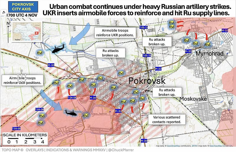 “Chuck Pfarrer”表示,透过与 FPV 无人机部队的合作,乌军空降部队与特种部队持续在顿涅茨克地区打击俄军阵地与军备,甚至成功在罗丁斯克地区消灭了一支俄军连级进攻部队。与此同时,乌军也派遣 F-16 战机针对俄军的指挥所与无人机发射场发起空袭,计划透过切断俄军后勤补给的方式,让红军城成为“俄军的坟场”。