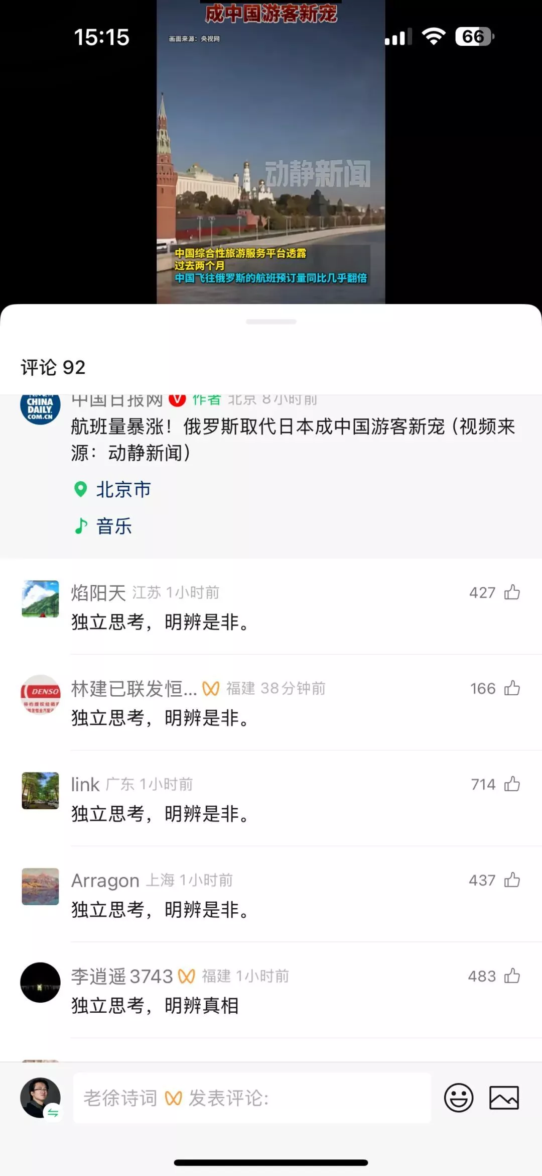 结果,我点开评论区,网友都在刷“独立思考,明辨是非”。
