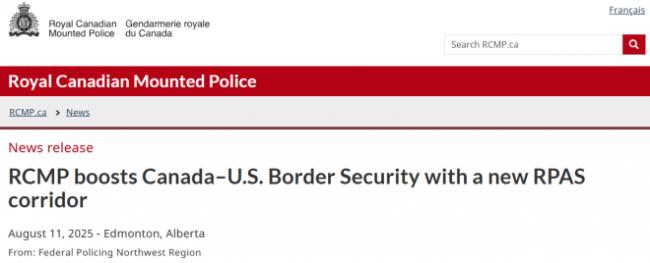目前,中国无人机占了皇家骑警1,230架无人机(RPAS)机队的大约80%。这些无人机平常会用在加美边境监控,以及各种警务任务中。