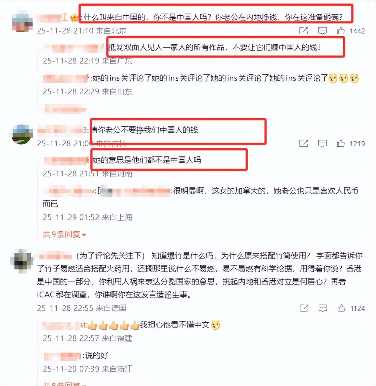 另外一个立场不明的人,是香港歌手程浚彥的妻子,她在外网上发了类似文字,将火灾甩锅给内地。