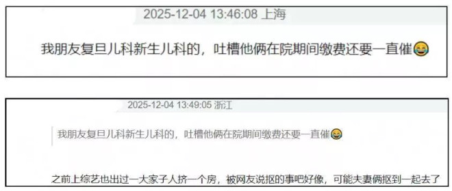 这时候还有网友出来爆料,表示自己的朋友在复旦儿科新生儿科,吐槽过郑恺和苗苗夫妻,声称他们在院期间缴费还要一直催。