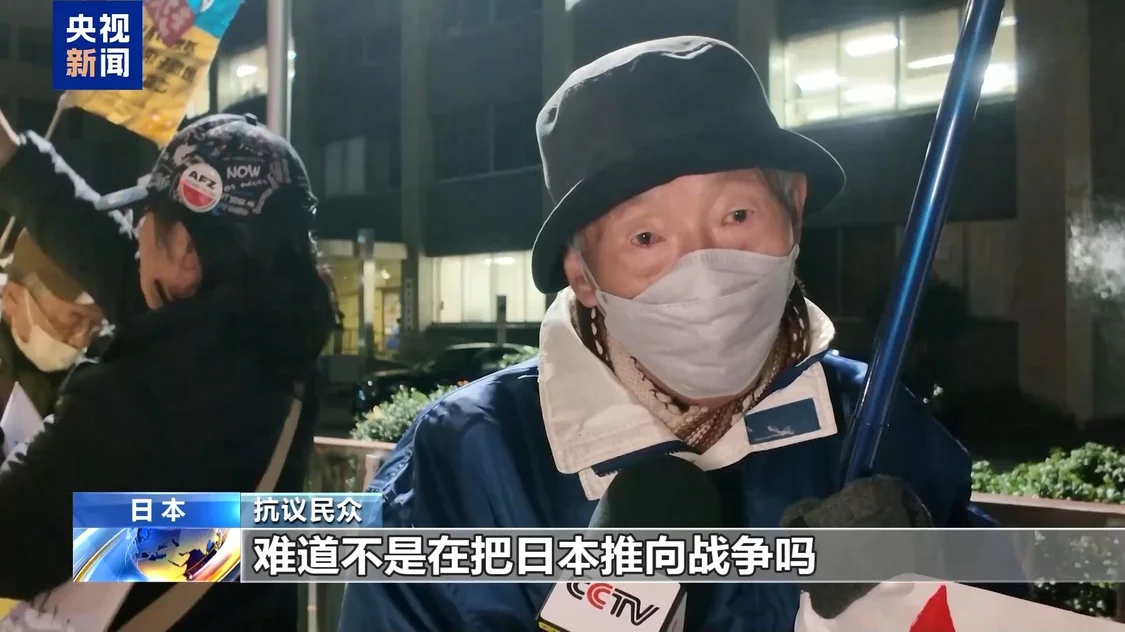 总台记者 李卫兵:12月4日晚上,日本民众再次自发聚集在首相官邸前,举行抗议集会,要求日本首相高市早苗立即撤回煽动战争的涉台错误言论。