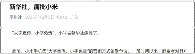 只不过,新华社敲打意味明显,并没有戳破,但民间媒体可不管那一套,顺手接过话茬,直言“新华社痛批小米”。