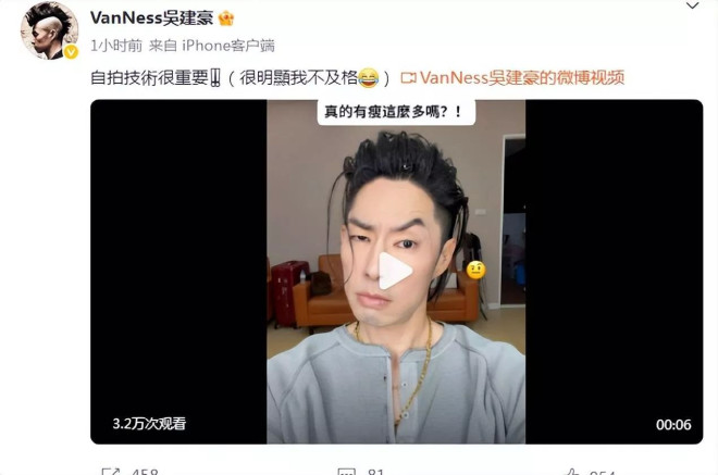 吴建豪回应暴瘦40斤:自拍技术很重要