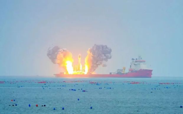 ● 引力一号遥二大型固体运载火箭在海上点火发射