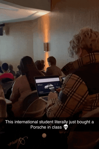 作为一个留学生(专题),别人上课可能在刷短视频和上双排,而他,在当场下单买保时捷。