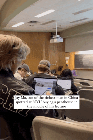 在另一节课上他又被“偷拍”,这一次,杰马在手指轻点,网购总价4亿美金的纽约(专题)顶层公寓。