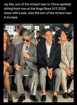 顶富二代一定要去的时装周,杰马自然不能落下,他受邀在Hugo Boss头排看秀。