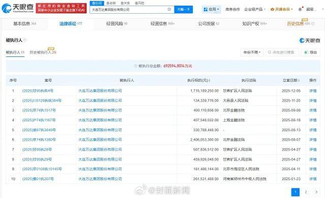 万达集团被恢复执行17亿 被执行总金额超69亿元