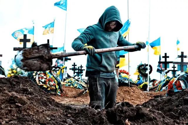 俄罗斯的入侵造成双方大规模伤亡,图中民众在敖德萨挖掘坟墓,以安葬遭俄罗斯无人机袭击后的遗体