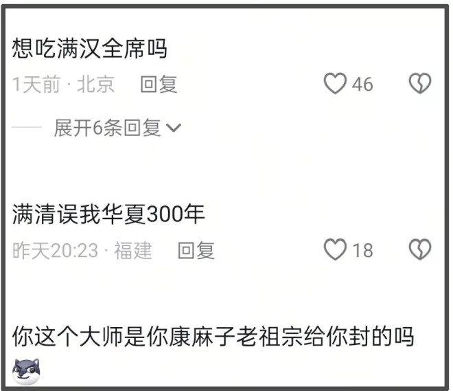 不少网友纷纷在评论区留言,嘲讽支持他把宅子要回来,还有的P清朝辫子抵制。