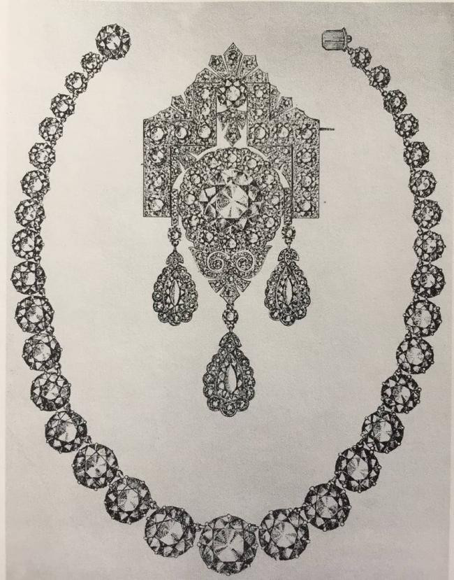 原来的首饰,是1879年艾玛公主和彼时已经年迈的威廉三世结婚时所收到的新婚礼物之一,总共由大大小小214颗明亮式切割的钻石组成,而那颗黄钻显然是其中最大的一颗。