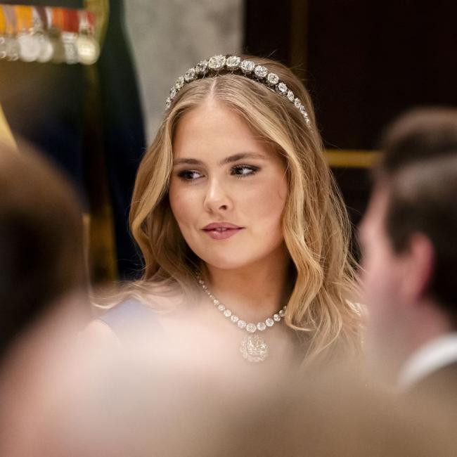 据悉,她的束带式王冠上共镶嵌着27颗大钻石,曾属于她的曾祖母朱莉安娜女王(Queen Juliana),是荷兰珠宝商为其量身定制的。