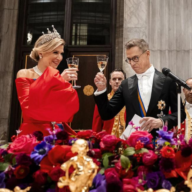 来源:倍可亲(backchina.com)当地时间12月11日,荷兰国王威廉-亚历山大和王后马克西玛,在阿姆斯特丹王宫举办国宴,招待到访的芬兰总统亚历山大·斯图布及其夫人苏珊娜·伊内斯-斯图布,他们正在荷兰进行为期两天的国事访问。
