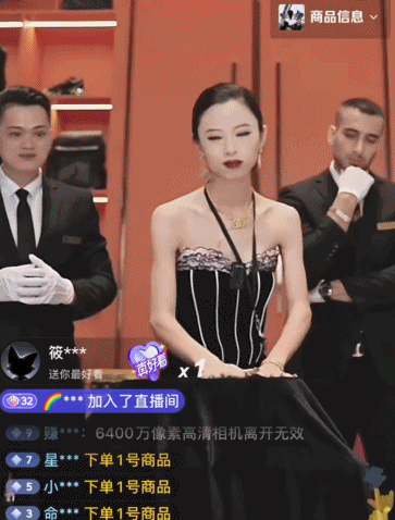 在她的身后,站着一排西装革履的男模助播,他们的存在不仅增添了直播间的时尚感,还在 COCO 姐介绍商品时,适时地表现出各种夸张的情绪,如难以置信、得意洋洋等,为直播间营造出一种热闹非凡的氛围。有时,助播们还会推着小车走上前,车上盖着红色或黑色的盖布,当 COCO 姐猛地掀开盖布,露出里面的商品时,总能引发一阵惊呼,让观众的好奇心被彻底点燃。