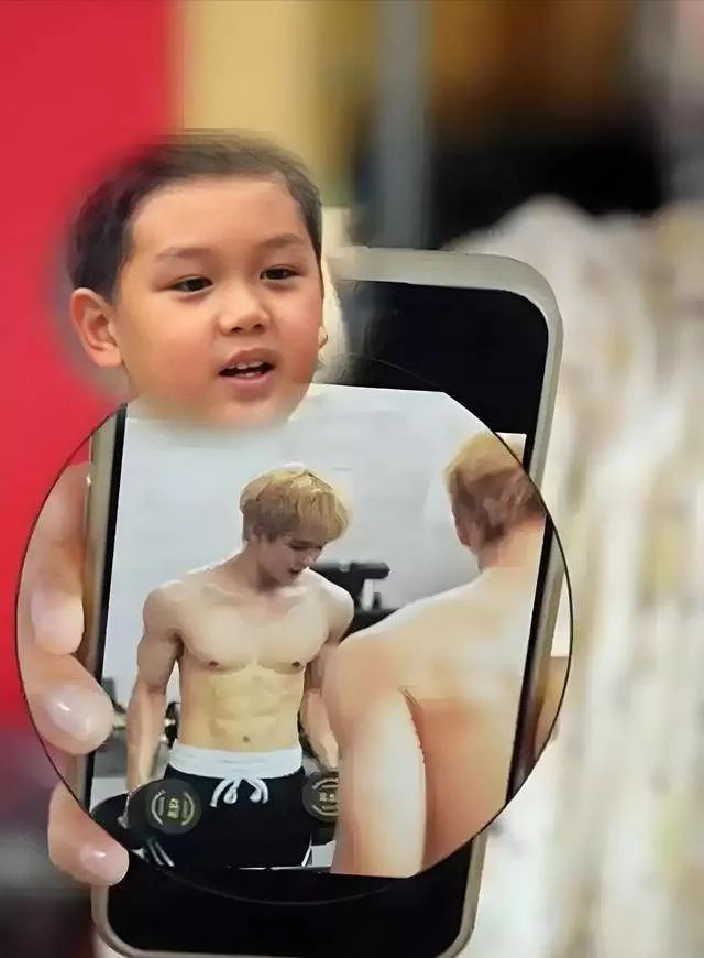 以前圆乎乎的胖墩,现在天天泡健身房,练出八块腹肌、倒三角身材,180 多的个子站在王艳身边,高出小半头却总记得护着妈妈。