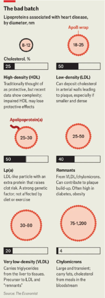 这些发现源于对脂蛋白颗粒本身更深入的科学理解,原来它们的种类不止低密度脂蛋白和高密度脂蛋白两种。似乎存在着一个完整的脂蛋白生态系统。而且,如同在真实的生态系统中一样,居民们扮演着不同的角色。有些比其他的更危险。