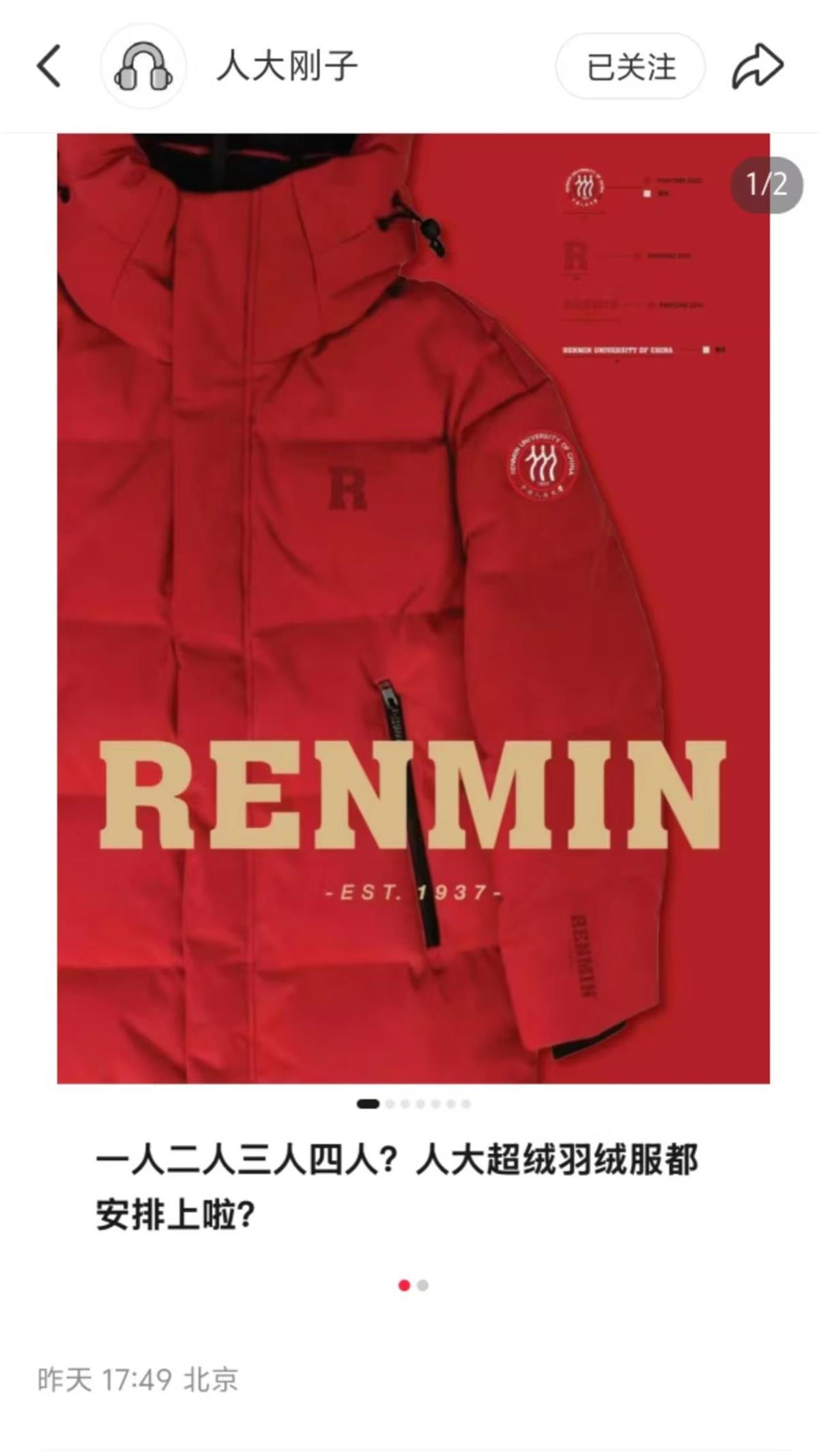 书记发帖“带货” 中国人民大学羽绒服卖疯了