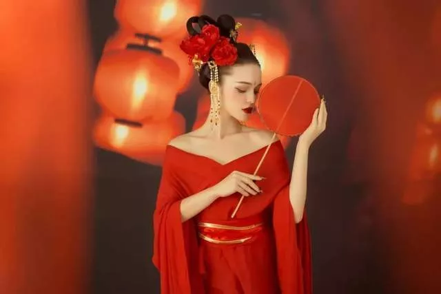 她是俄罗斯人,皮肤白得能看出来血管,眼窝凹陷,鼻梁高挺。在西安华清池景点举办的杨贵妃妆造活动上,这张脸被画上细细的柳叶眉,额头上点了个花钿,头发也盘成高高的发髻,用花朵和发簪装饰。一身红色带着牡丹花纹的衣裙穿在身上,很容易让人联想到《妖猫传》里混血演员张榕容出演的杨贵妃,或者可以直接称她为“洋贵妃”——据说,杨贵妃有胡人血统,很可能就是外国人的长相。