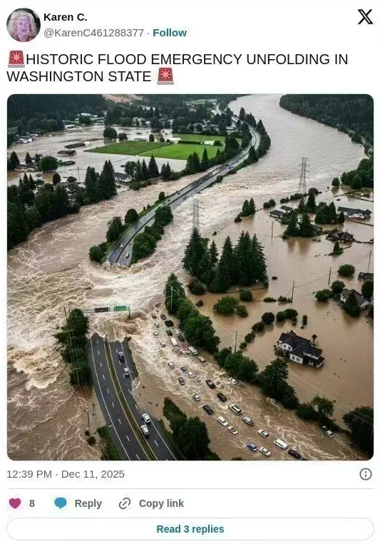 据报道,斯卡吉特河、斯诺霍米什河和普亚卢普河沿岸地区洪灾最为严重。州政府官员表示,该地区超过30条高速公路和数十条小型道路因洪水而封闭。