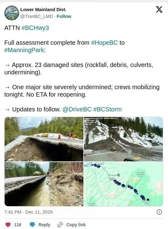 来源:倍可亲(backchina.com) 专题:多伦多大都市区 相关新闻报道一场大气河流席卷了大温及周边地区,包括美国的华盛顿州,虽然大温地区遭遇了创纪录的大雨,但没有遭遇太多的灾情,但周围却惨了。
